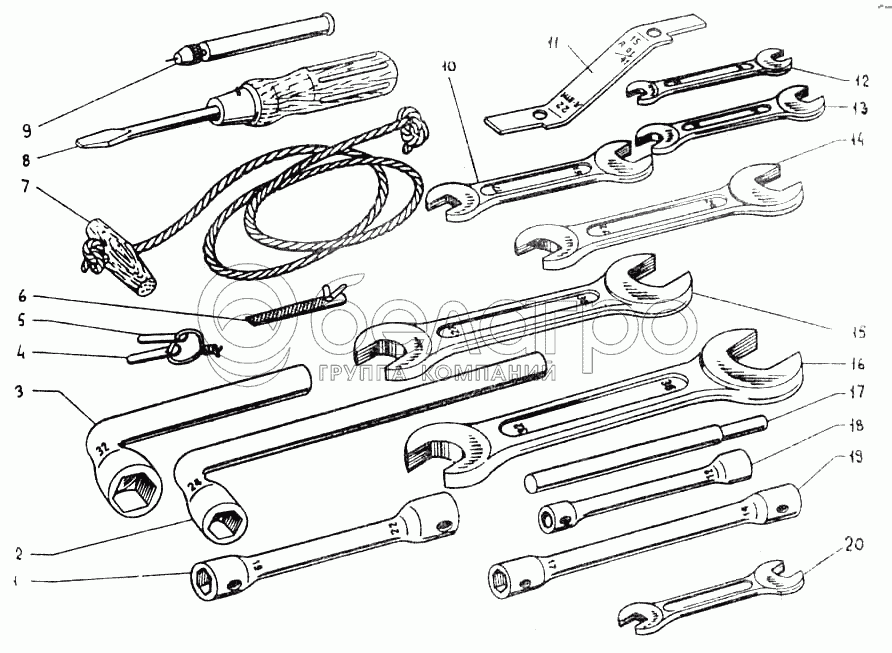 Каталог запасных частей к технике: ВгТЗ ДТ-75МВ. Комплект инструмента и приспособлений