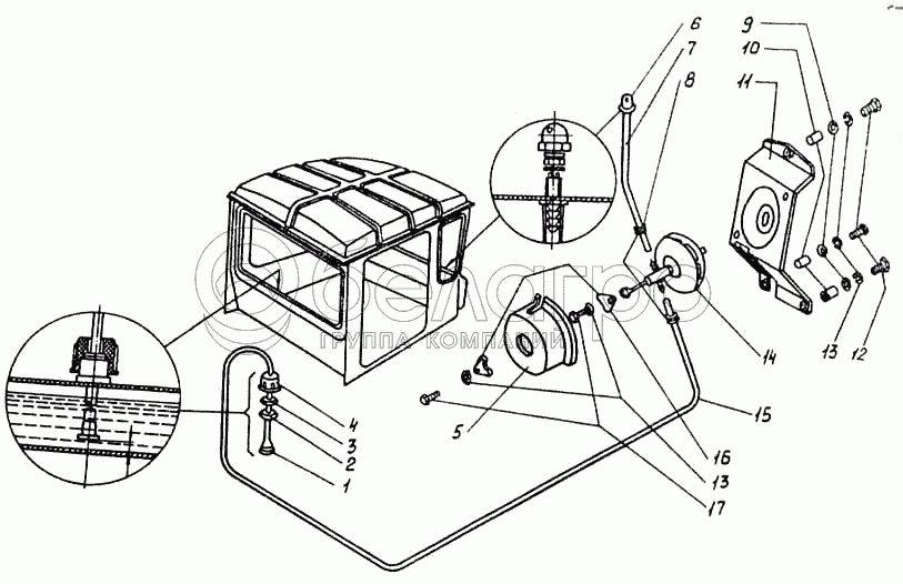 Каталог запасных частей к технике: ВгТЗ ДТ-75МВ. Оборудование кабины. Омыватель переднего стекла