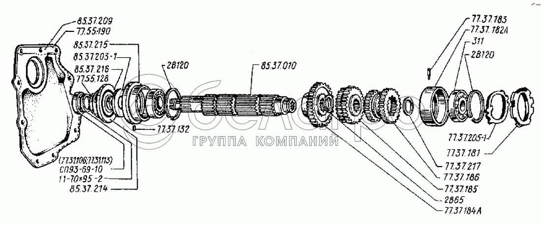Каталог запасных частей к технике: ВгТЗ ДТ-75Н. Коробка передач. Вал первичный