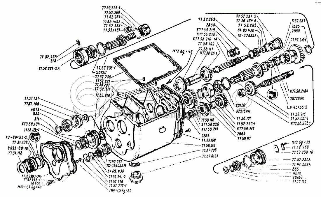 Каталог запасных частей к технике: ВгТЗ ДТ-75Н. Реверс-редуктор. Валы