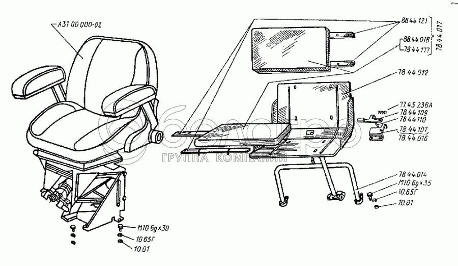 Каталог запасных частей к технике: ВгТЗ ДТ-75Н. Сиденье