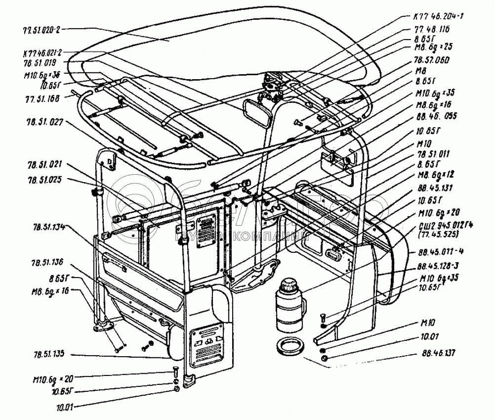 Каталог запасных частей к технике: ВгТЗ ДТ-75Н. Тент