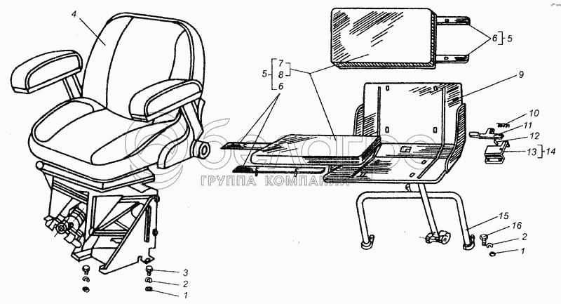 Каталог запасных частей к технике: ВгТЗ ДТ-75В, ДТ-75БВ, ДТ75Н. Сиденье