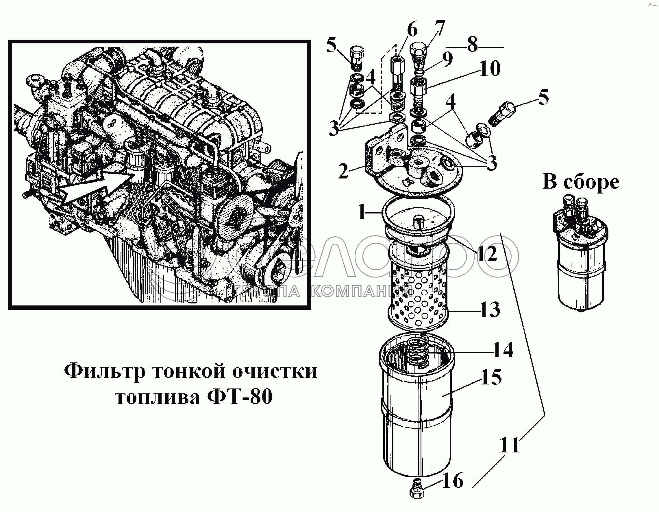 Каталог запасных частей к технике: ВгТЗ ВТ-100Д. Фильтр тонкой очистки топлива ФТ-80