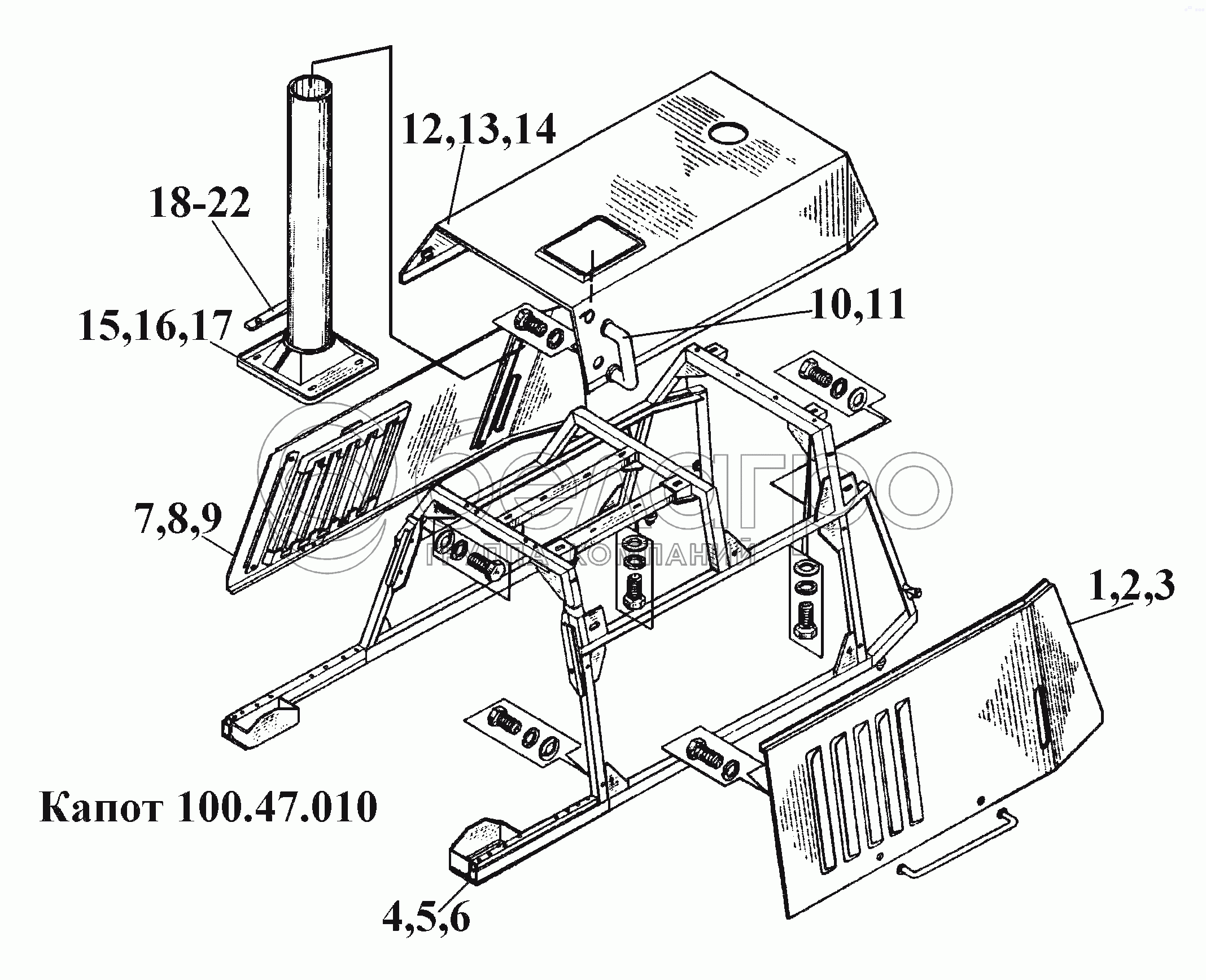Каталог запасных частей к технике: ВгТЗ ВТ-100Д. Капот 100.47.010 (3)
