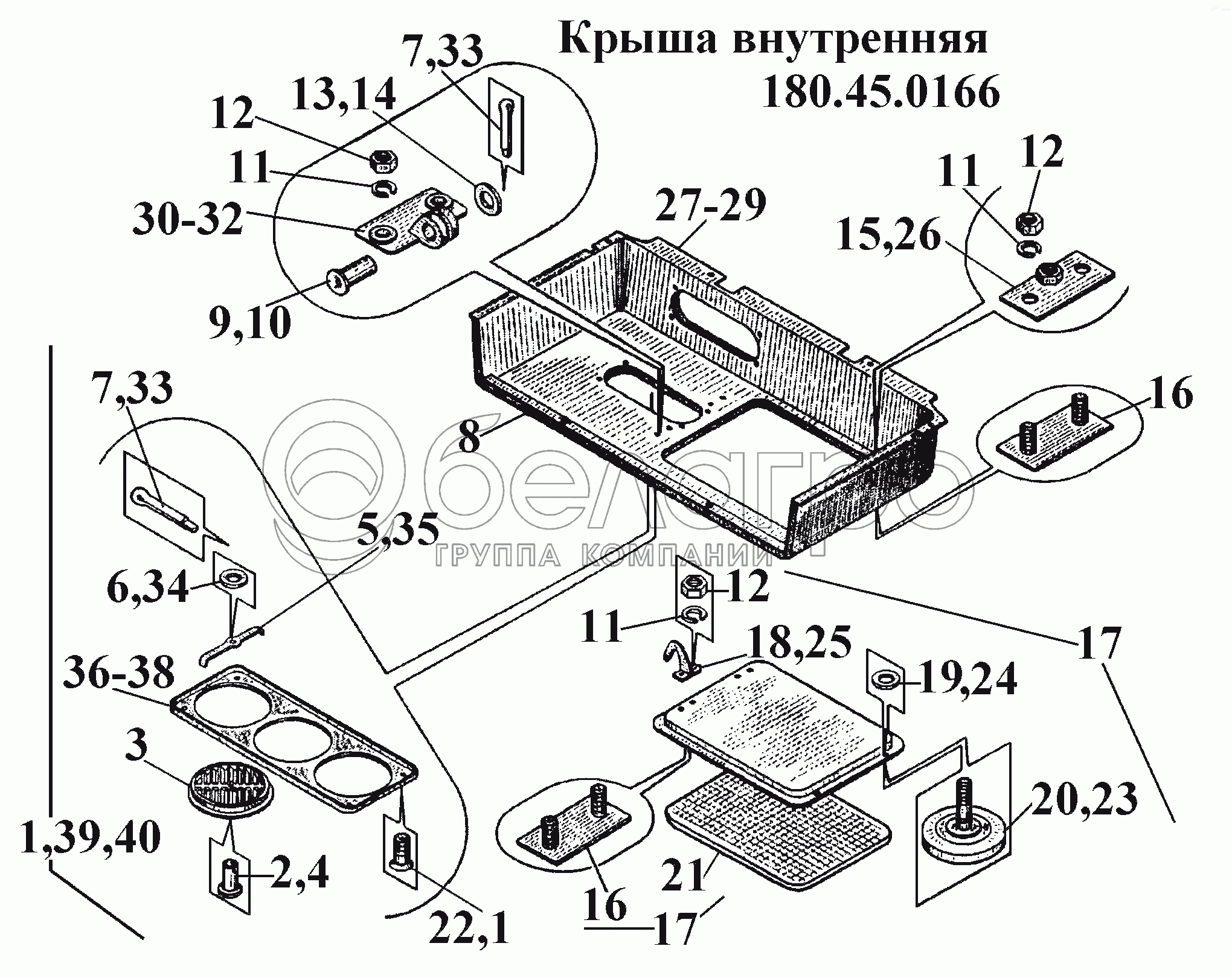 Каталог запасных частей к технике: ВгТЗ ВТ-100Д. Крыша внутренняя 180.45.0166