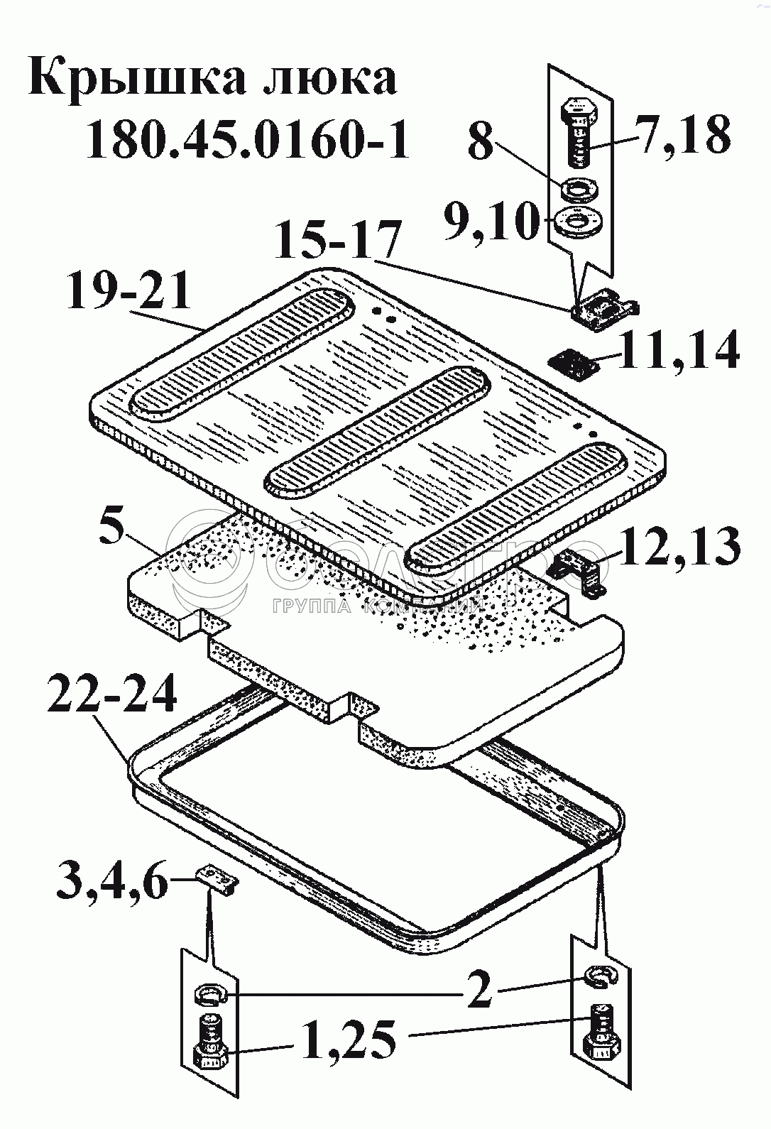 Каталог запасных частей к технике: ВгТЗ ВТ-100Д. Крышка люка 180.45.0160-1