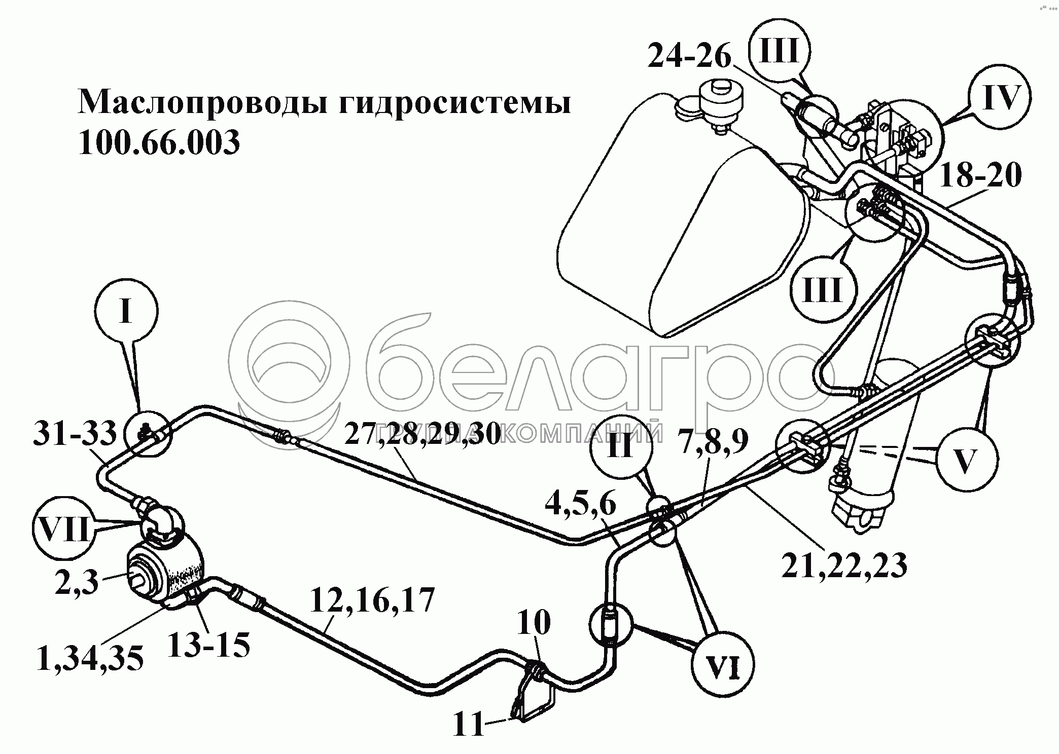 Каталог запасных частей к технике: ВгТЗ ВТ-100Д. Маслопроводы гидросистемы 100.66.003 (1)