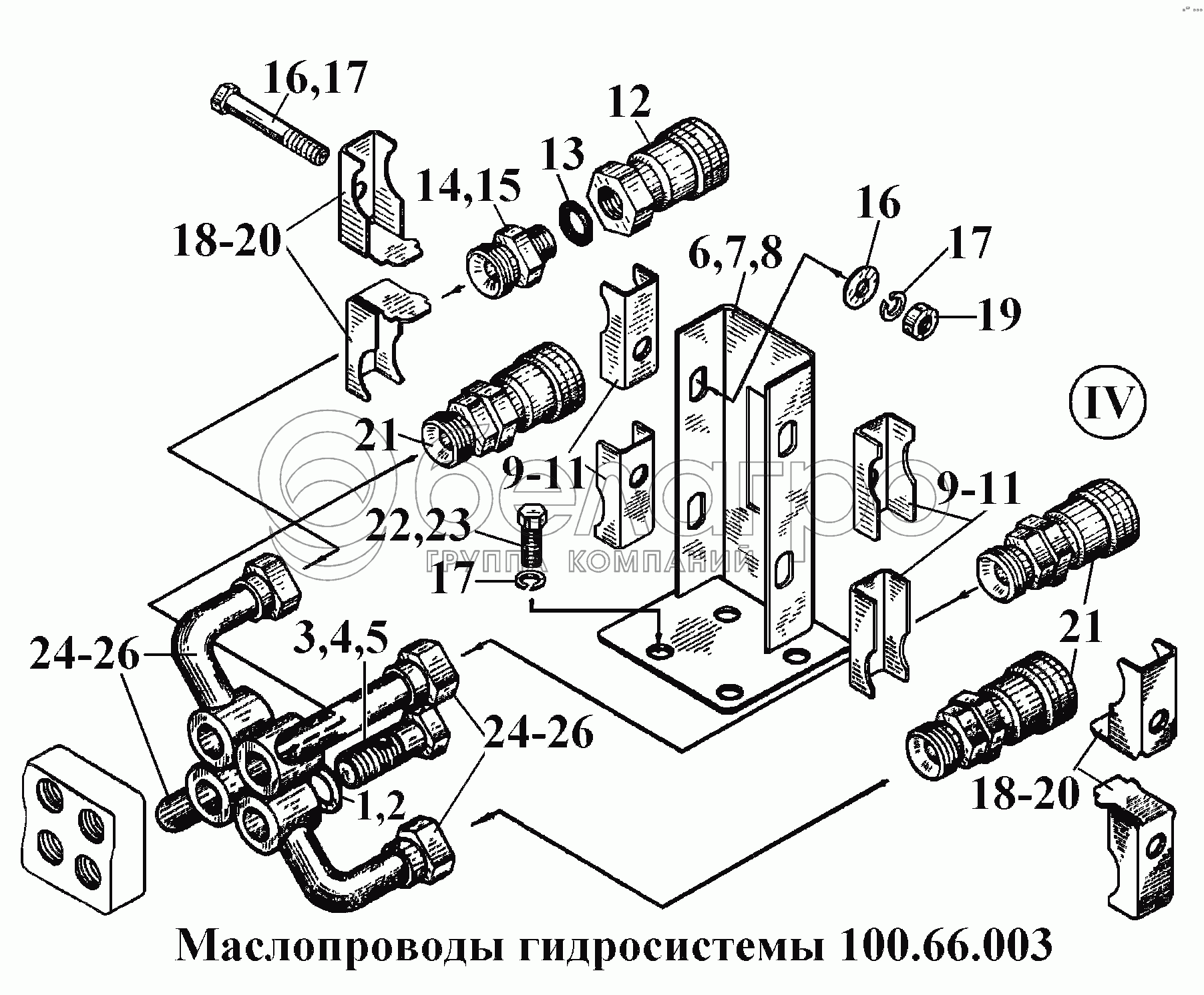 Каталог запасных частей к технике: ВгТЗ ВТ-100Д. Маслопроводы гидросистемы 100.66.003 (3)