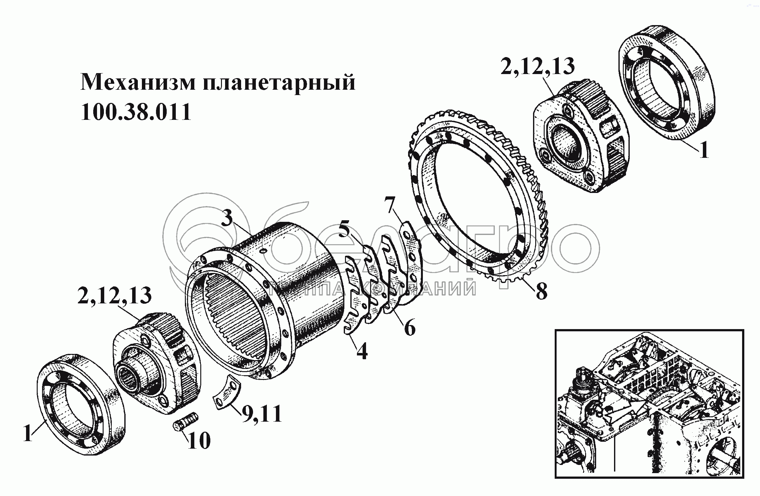 Каталог запасных частей к технике: ВгТЗ ВТ-100Д. Механизм планетарный 100.38.011