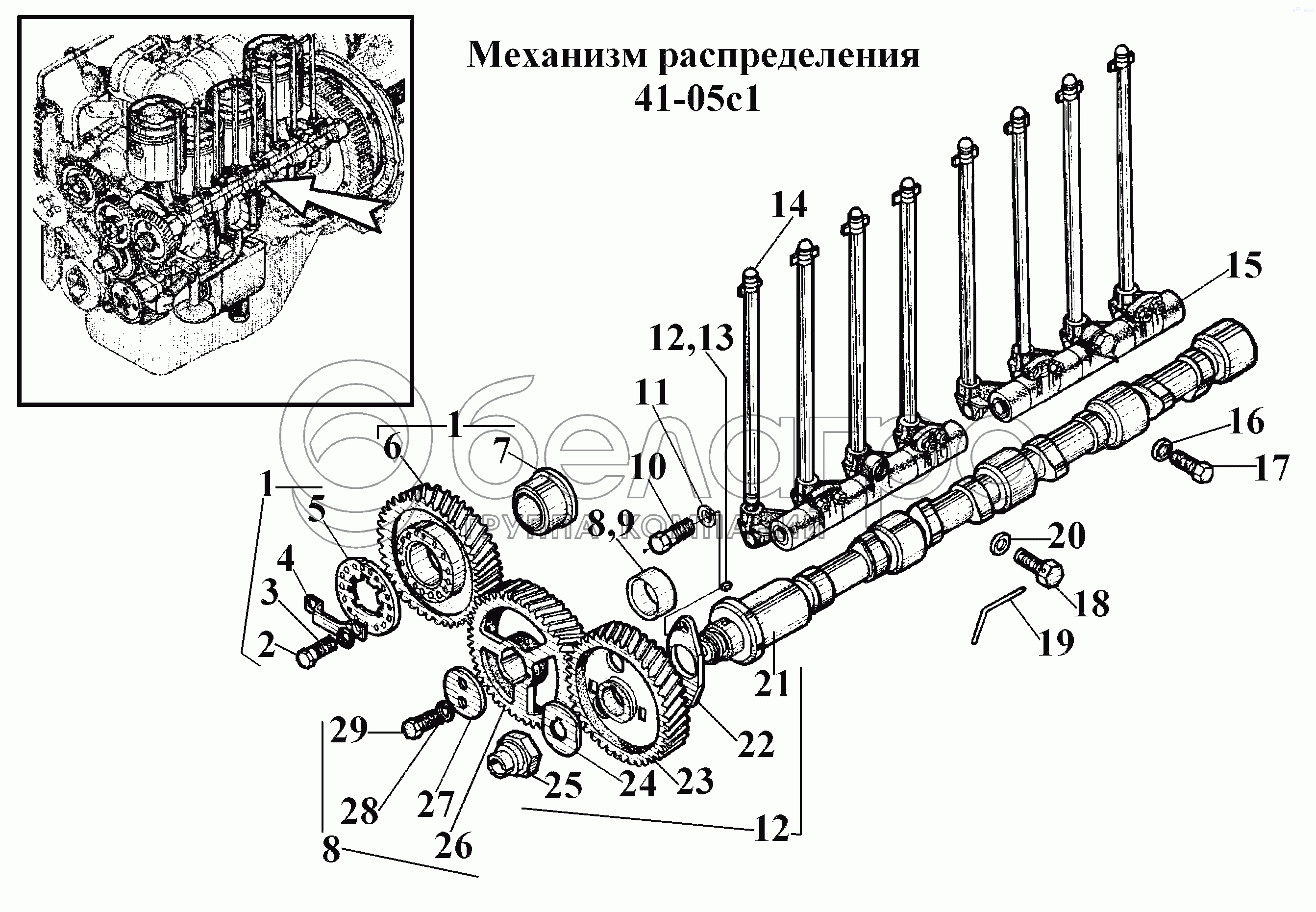 Каталог запасных частей к технике: ВгТЗ ВТ-100Д. Механизм распределения 41-05с1