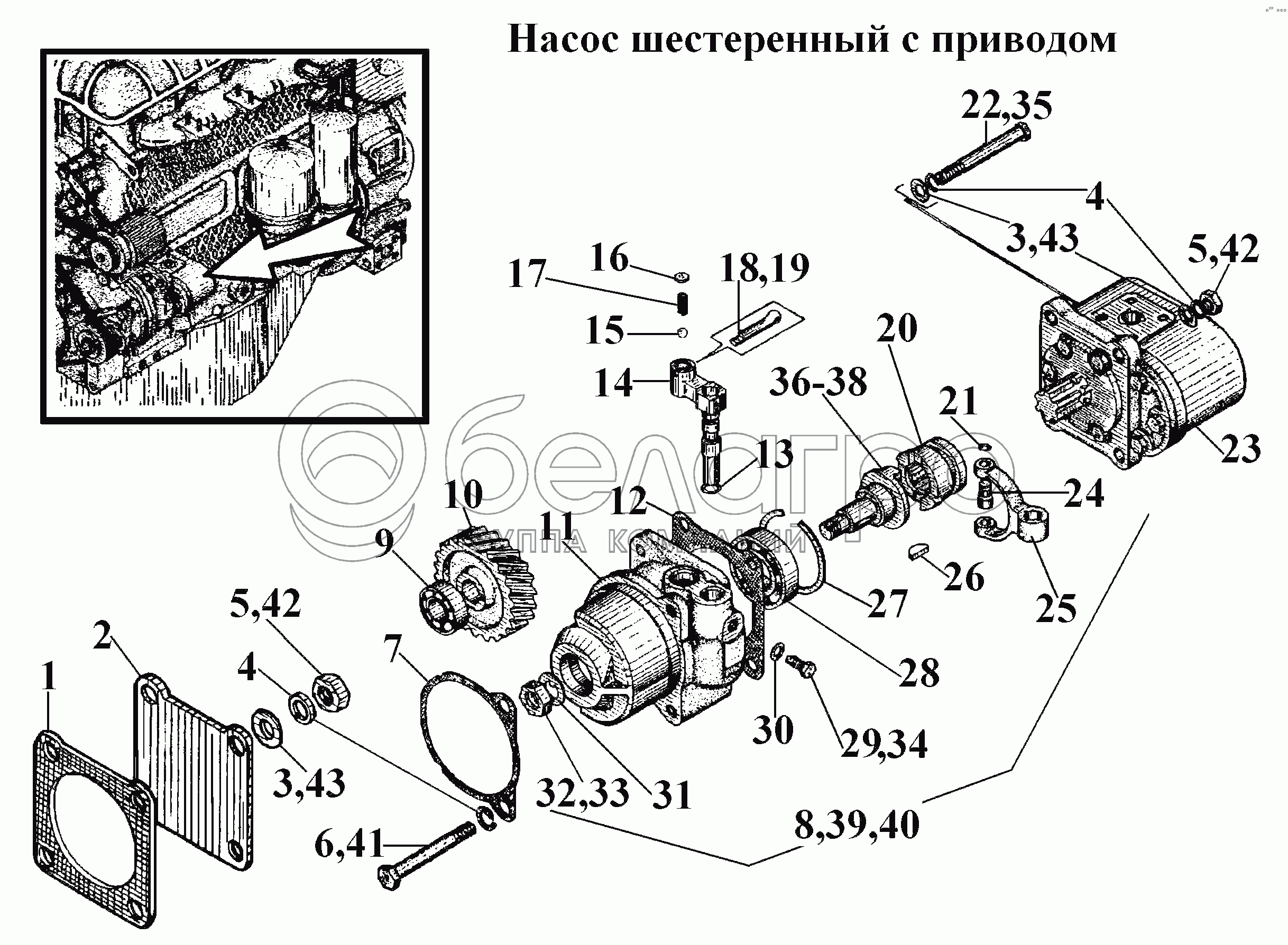 Каталог запасных частей к технике: ВгТЗ ВТ-100Д. Насос шестеренный с приводом