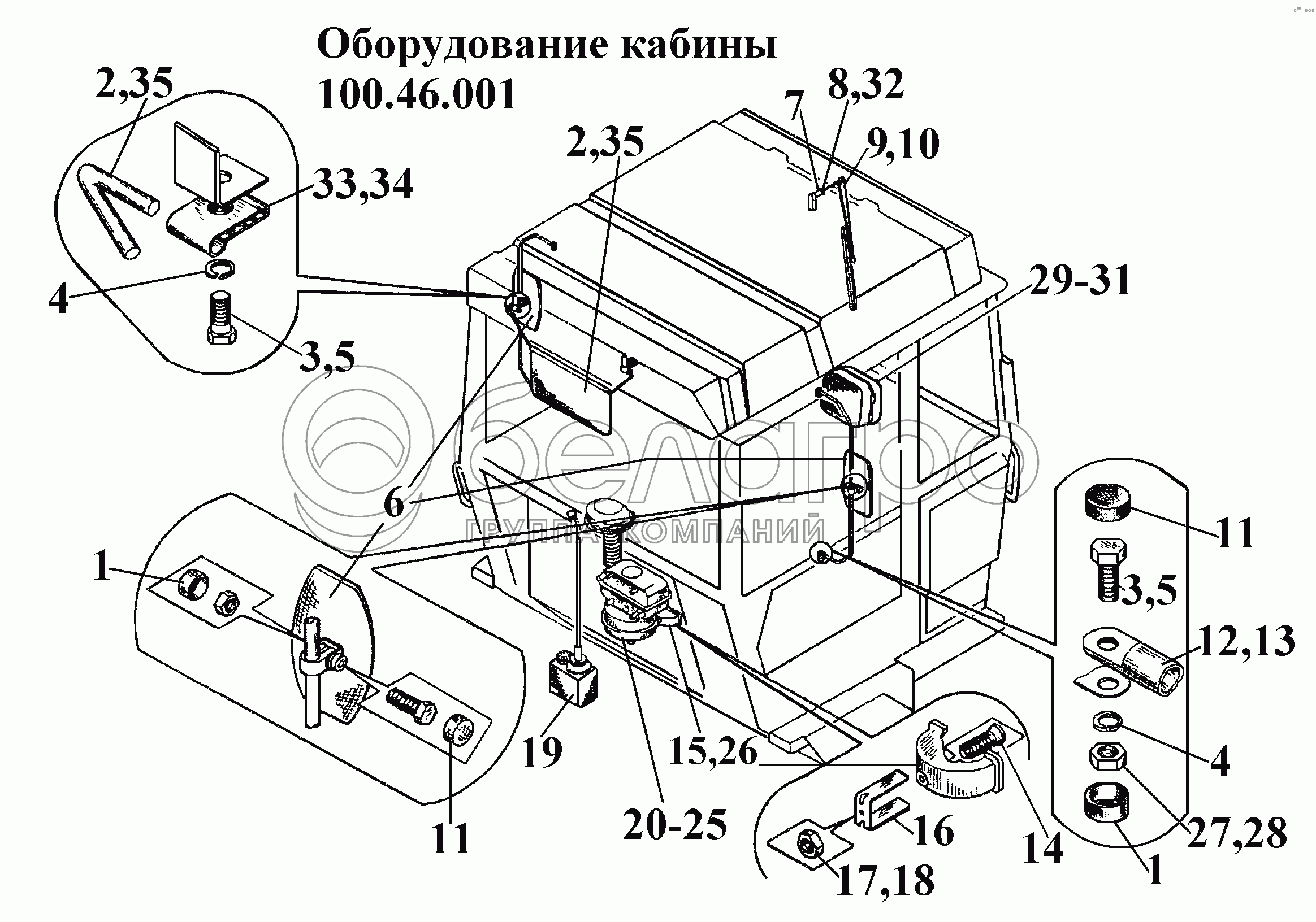 Каталог запасных частей к технике: ВгТЗ ВТ-100Д. Оборудование кабины 100.46.001