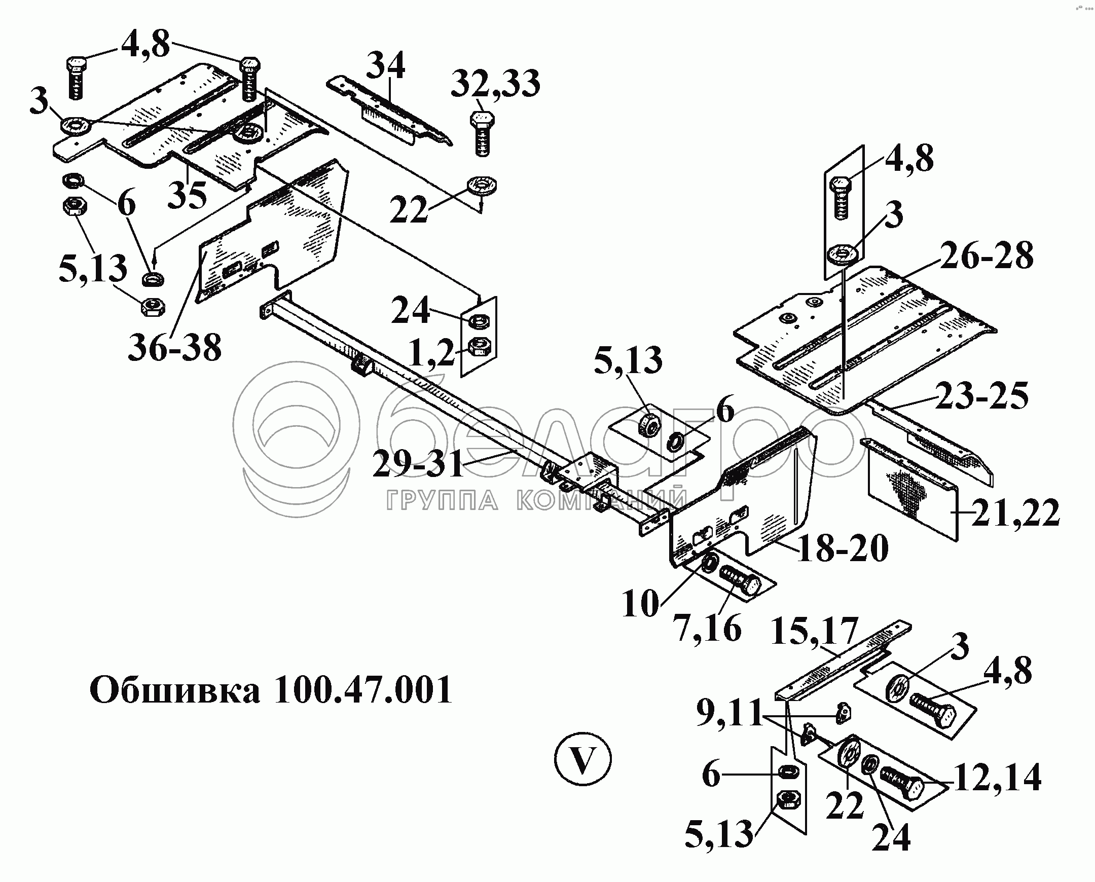 Каталог запасных частей к технике: ВгТЗ ВТ-100Д. Обшивка 100.47.001 (6)
