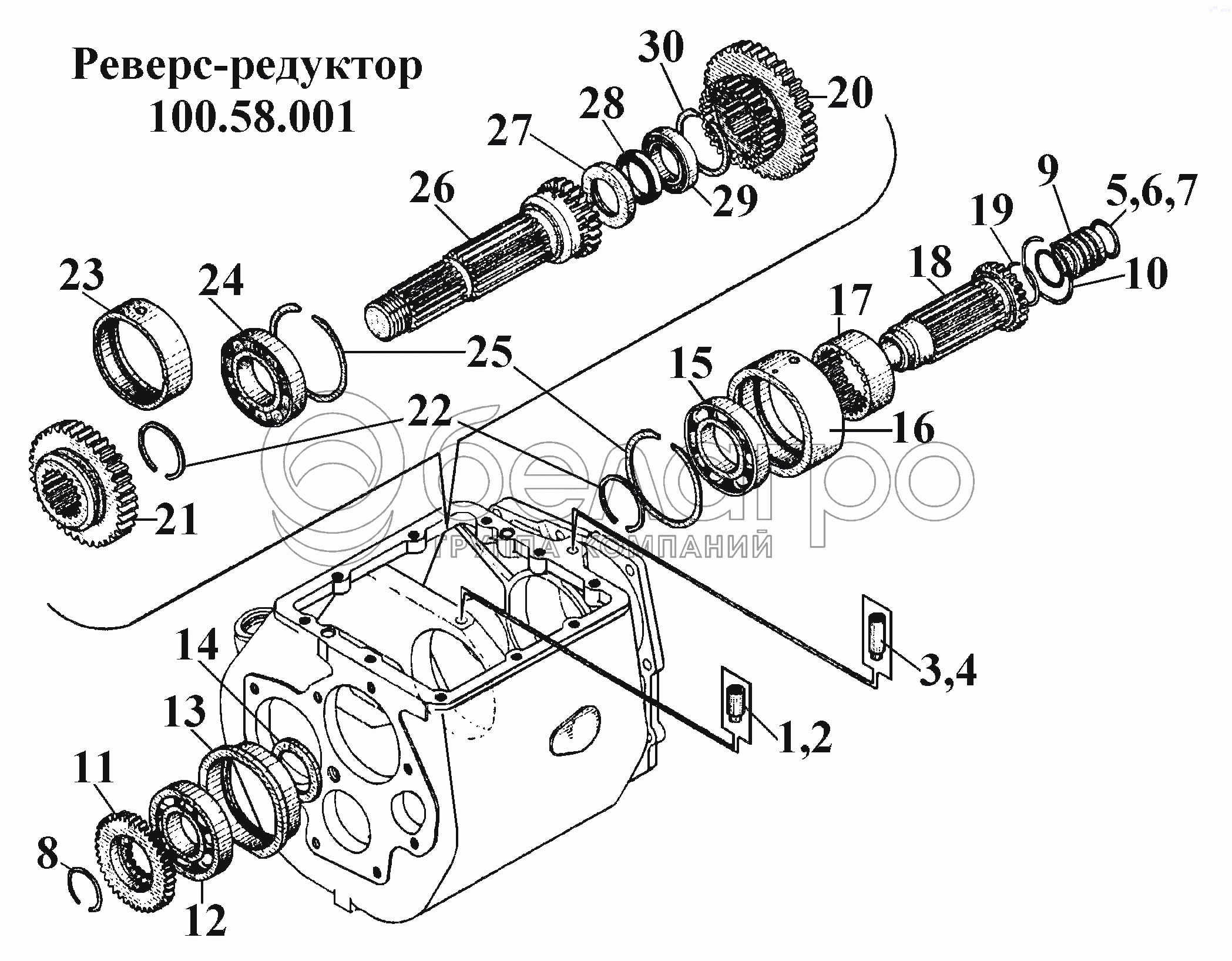 Каталог запасных частей к технике: ВгТЗ ВТ-100Д. Реверс-редуктор 100.58.001 (2)