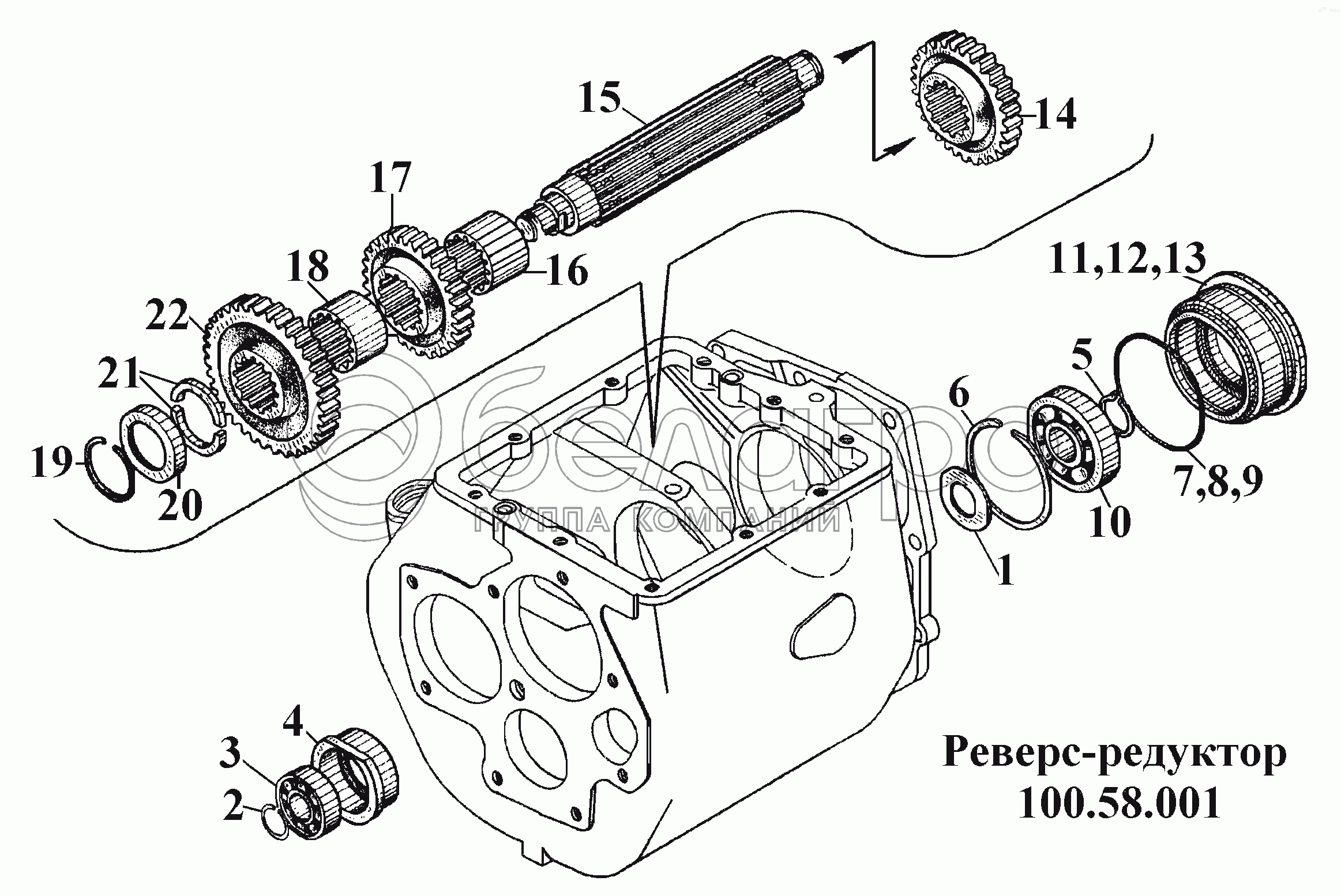 Каталог запасных частей к технике: ВгТЗ ВТ-100Д. Реверс-редуктор 100.58.001 (3)