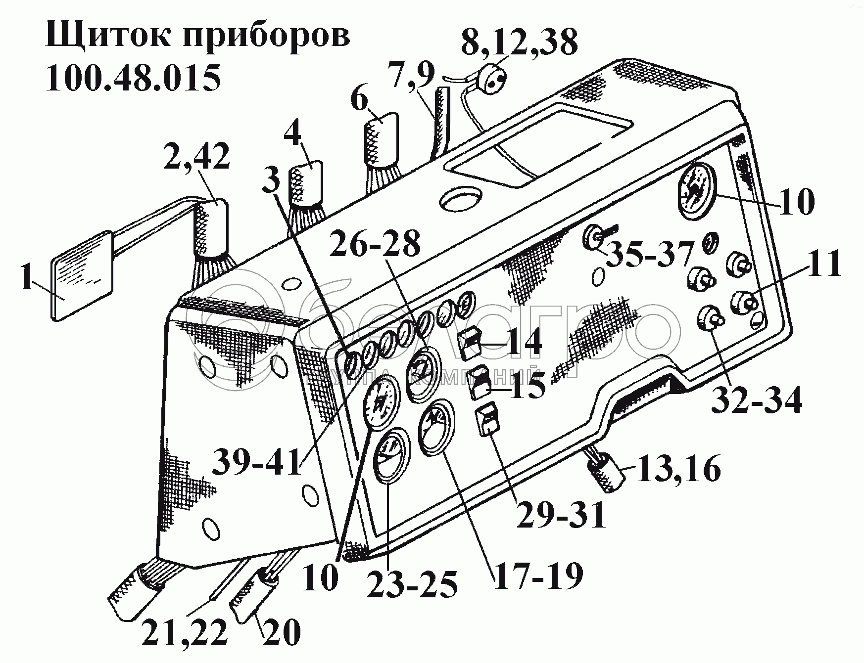 Каталог запасных частей к технике: ВгТЗ ВТ-100Д. Щиток приборов 100.48.015
