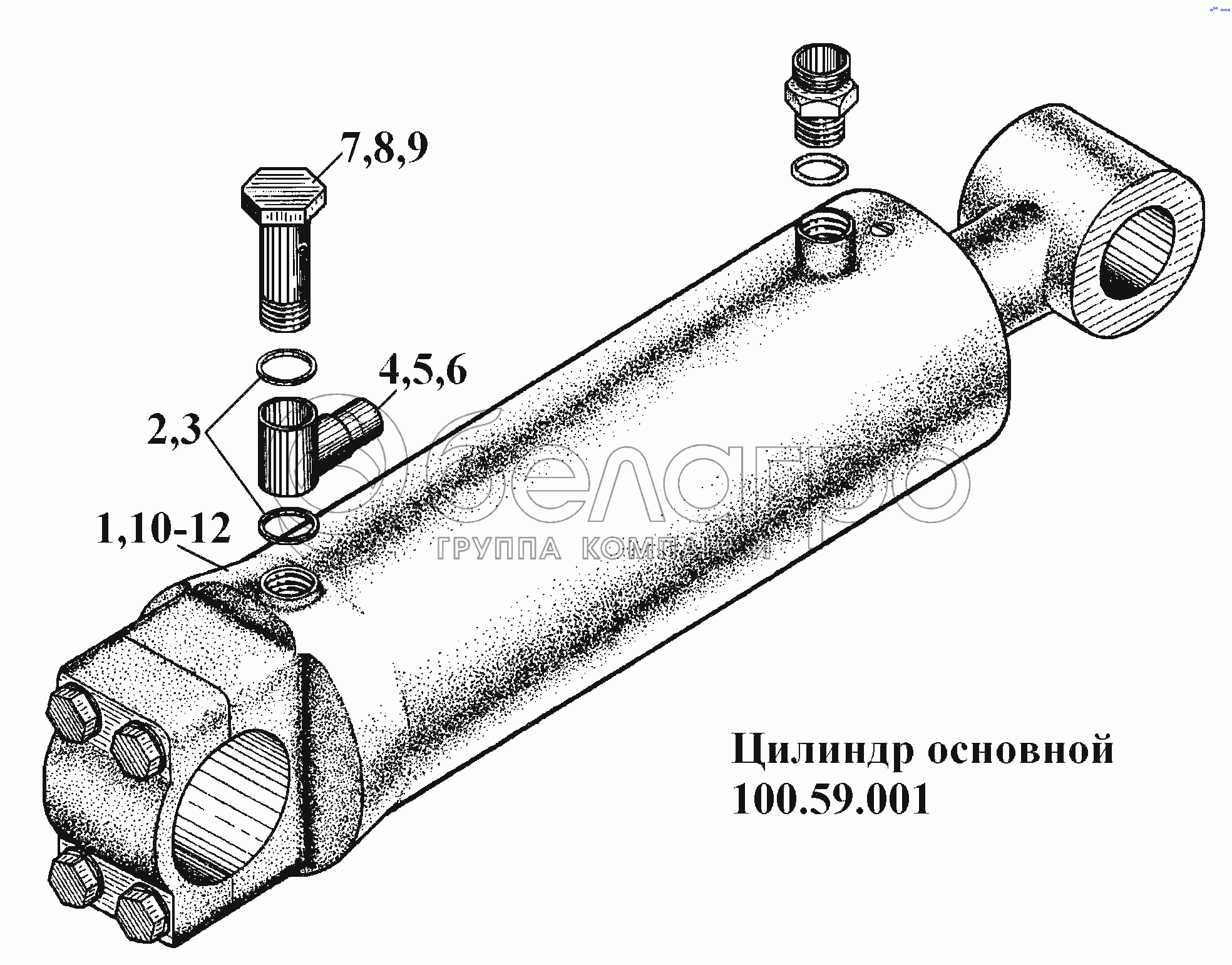 Каталог запасных частей к технике: ВгТЗ ВТ-100Д. Цилиндр основной 100.59.001
