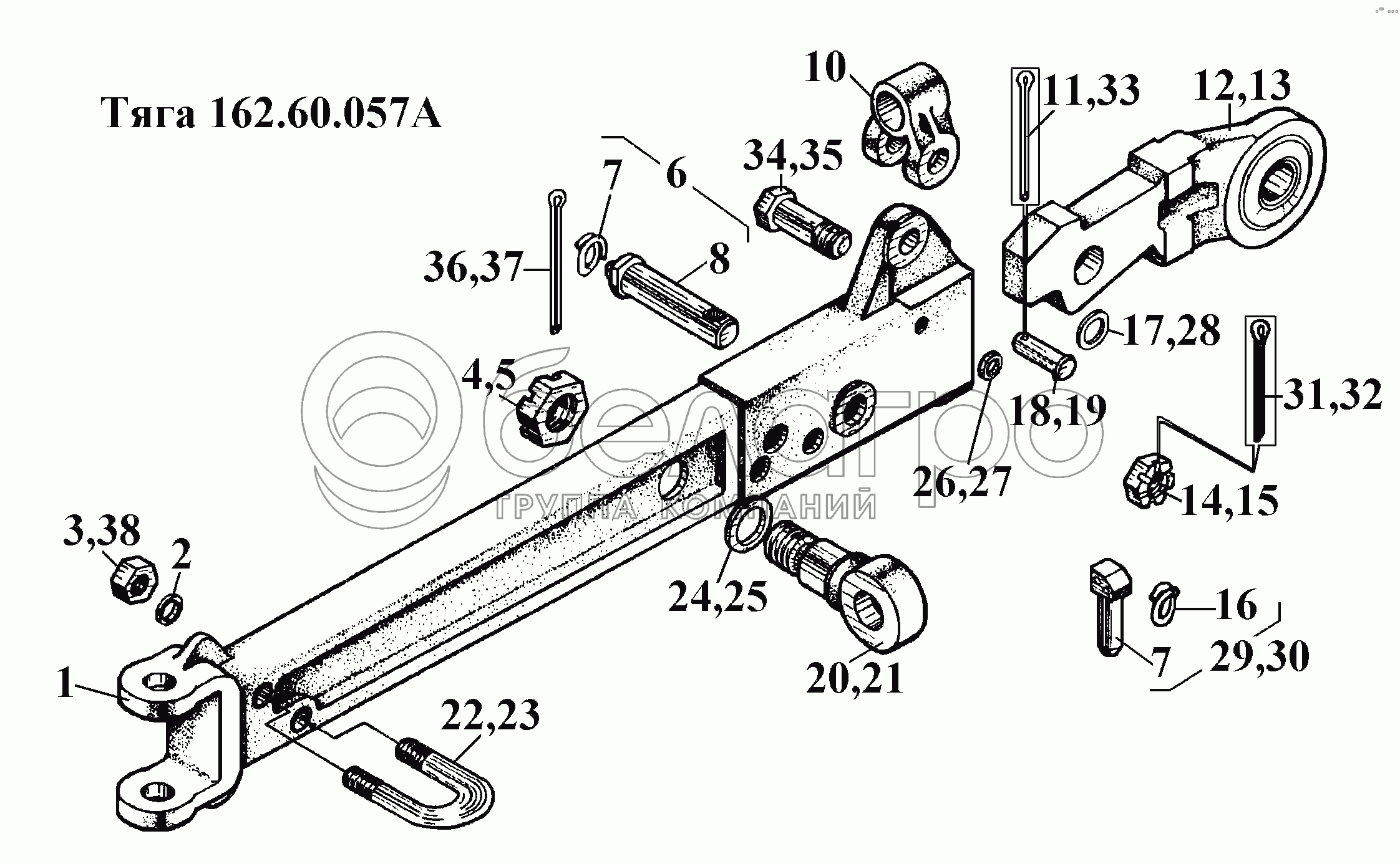 Каталог запасных частей к технике: ВгТЗ ВТ-100Д. Тяга 162.60.057А