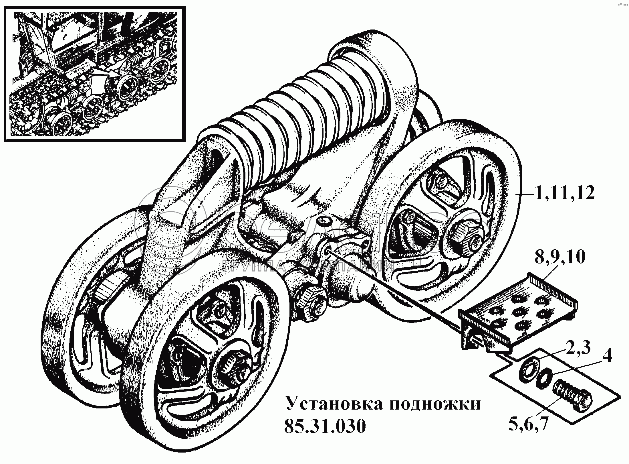 Каталог запасных частей к технике: ВгТЗ ВТ-100Д. Установка подножки 85.31.030