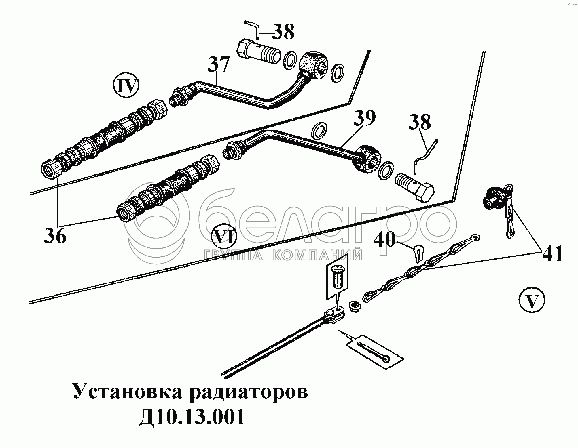 Каталог запасных частей к технике: ВгТЗ ВТ-100Д. Установка радиаторов Д10.13.001 (5)