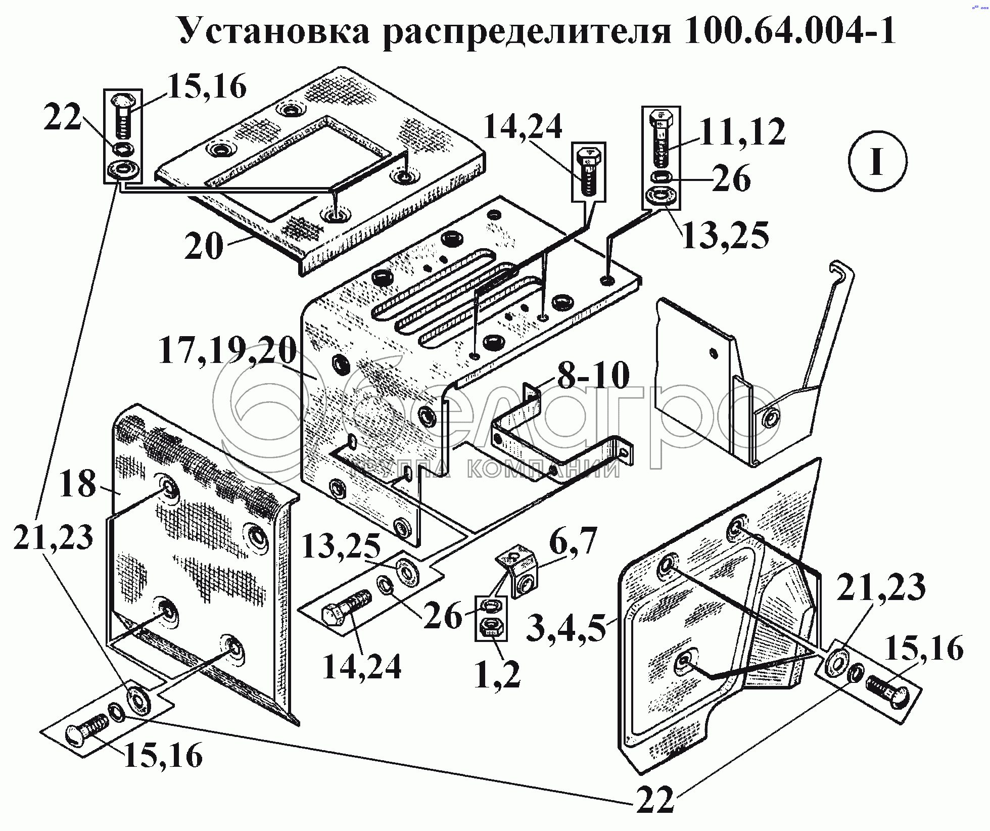 Каталог запасных частей к технике: ВгТЗ ВТ-100Д. Установка распределителя 100.64.004-1 (2)