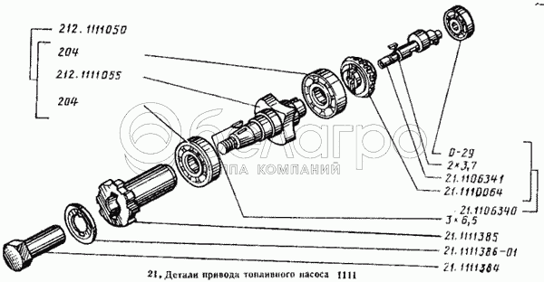 Каталог запасных частей к технике: ВТЗ Т-25А. Детали привода топливного насоса