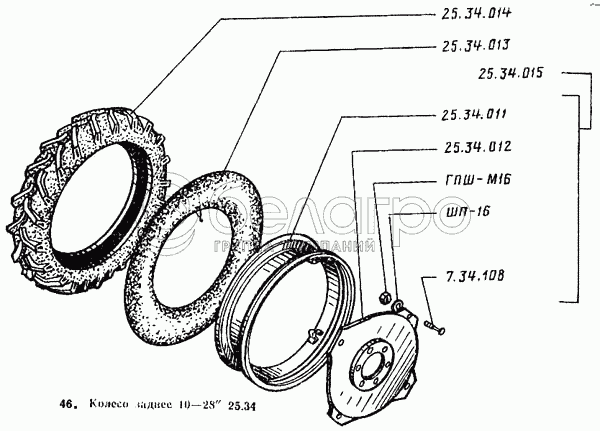 Каталог запасных частей к технике: ВТЗ Т-25А. Колесо заднее 10-28"