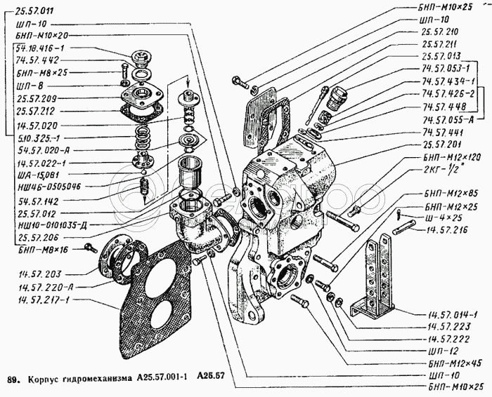 Каталог запасных частей к технике: ВТЗ Т-25А. Корпус гидромеханизма А25.57.001-1