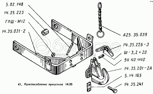 Каталог запасных частей к технике: ВТЗ Т-25А. Приспособление прицепное