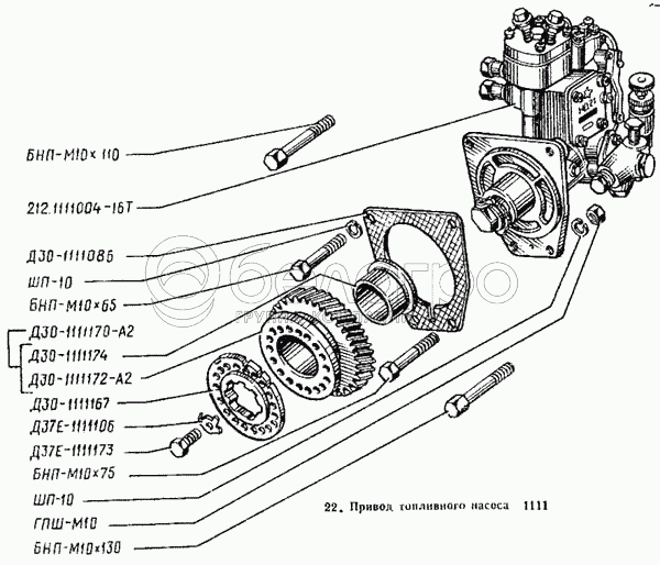 Каталог запасных частей к технике: ВТЗ Т-25А. Привод топливного насоса