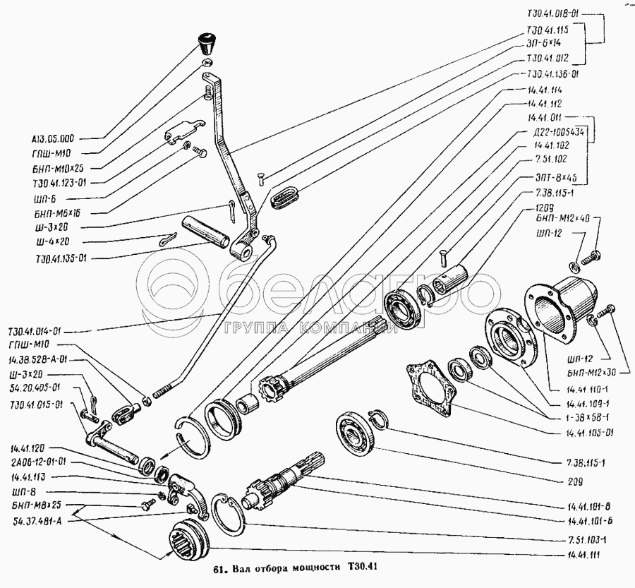 Каталог запасных частей к технике: ВТЗ Т-25А. Вал отбора мощности