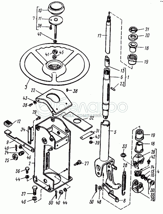 Каталог запасных частей к технике: ВТЗ Т-30A-80. Колонка рулевая