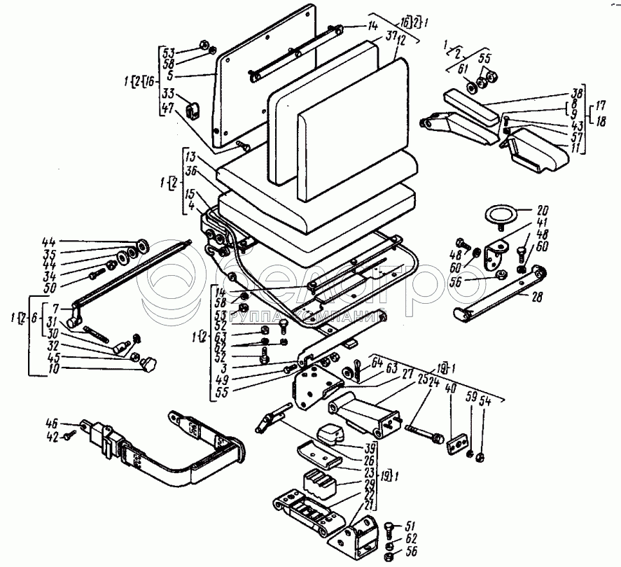 Каталог запасных частей к технике: ВТЗ Т-30A-80. Установка сиденья А25.44.011