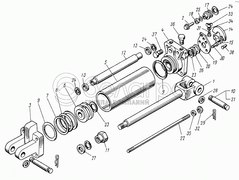 Каталог запасных частей к технике: ЮМЗ-6КЛ, (6КМ). Гидроцилиндр