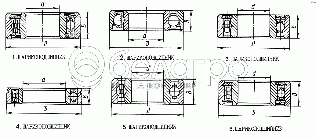 Каталог запасных частей к технике: ЮМЗ-6КЛ, (6КМ). Подшипники