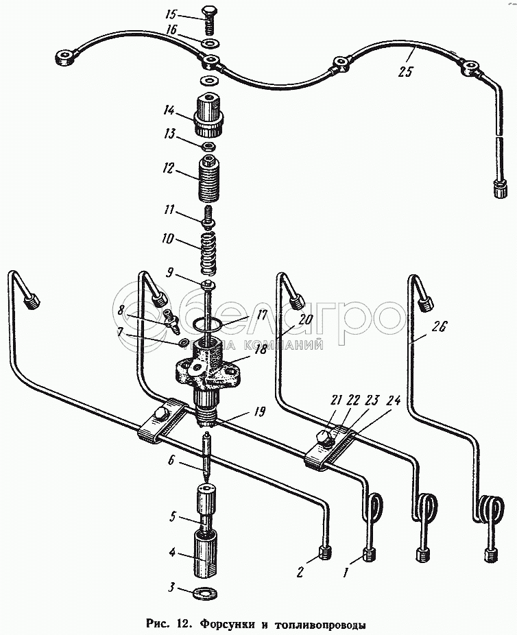 Каталог запасных частей к технике: ЮМЗ-6Л. Форсунки и топливопроводы