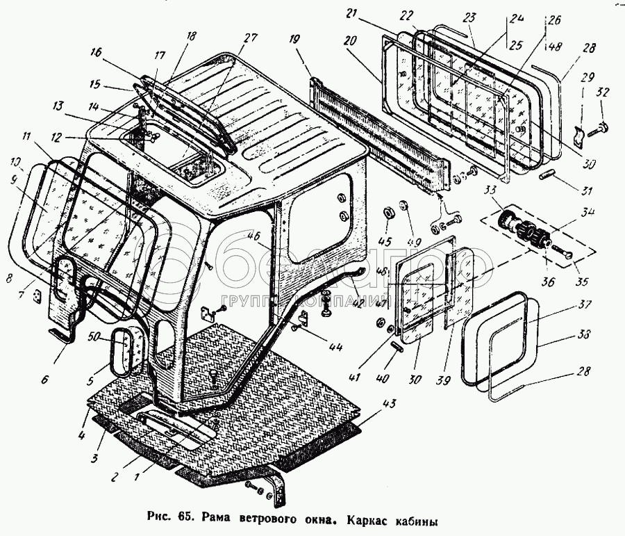 Каталог запасных частей к технике: ЮМЗ-6Л. Рама ветрового окна. Каркас кабины