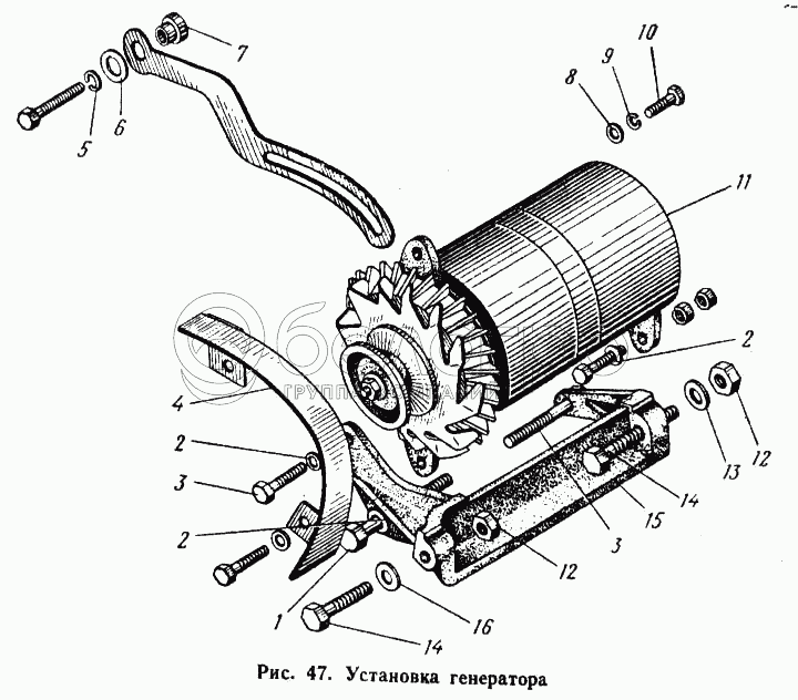 Каталог запасных частей к технике: ЮМЗ-6Л. Установка генератора