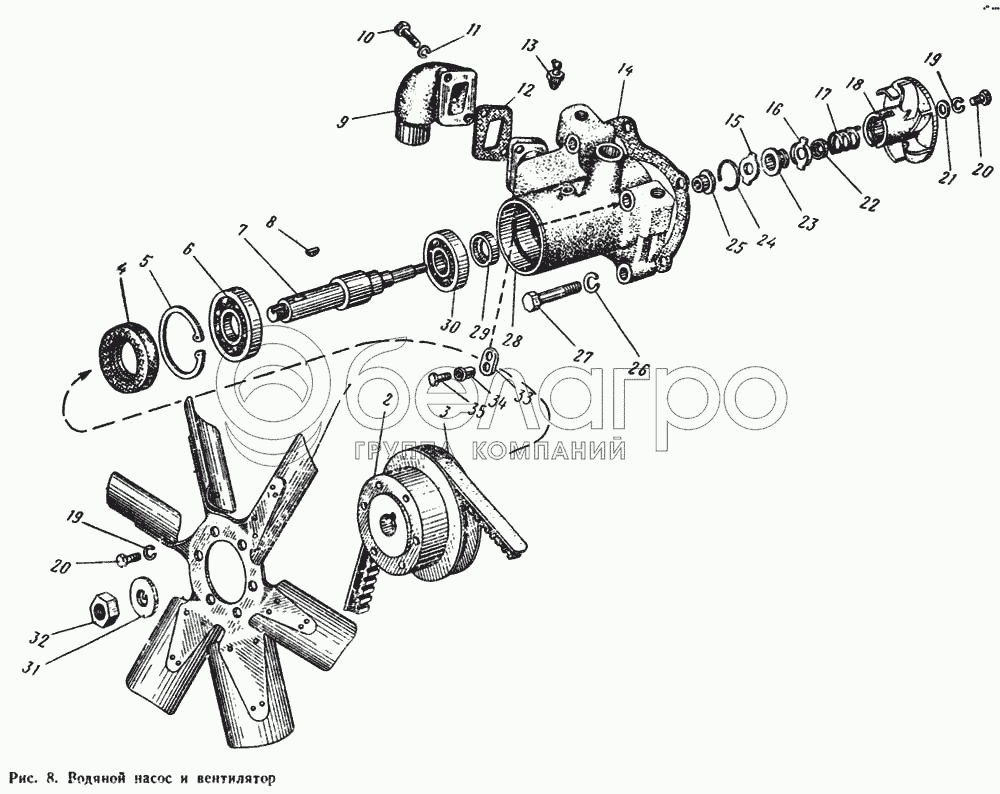 Каталог запасных частей к технике: ЮМЗ-6Л. Водяной насос и вентилятор