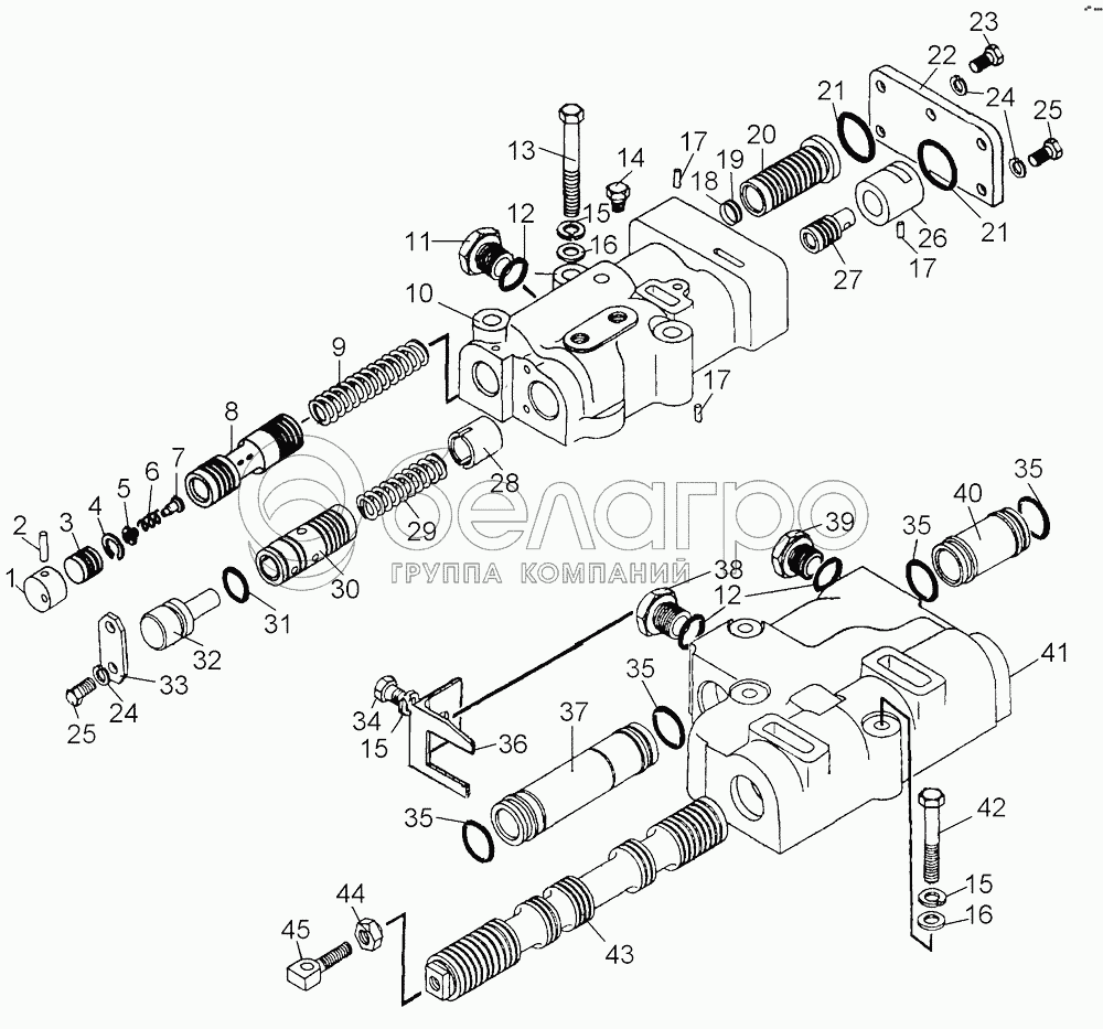 Каталог запасных частей к технике: ЧТЗ Бульдозер Б11. Блок клапанов, блок передач