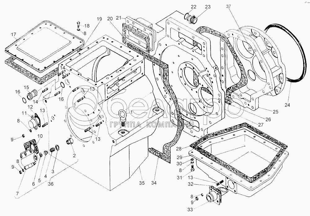 Каталог запасных частей к технике: ЧТЗ Бульдозер Б11. Корпус, проставка, клапан
