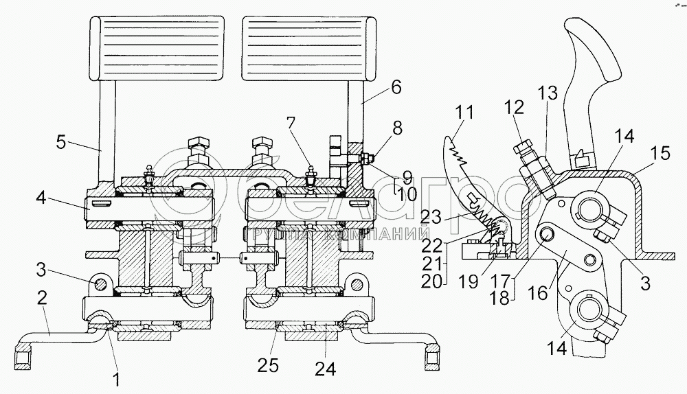 Каталог запасных частей к технике: ЧТЗ Бульдозер Б11. Механизм управления тормозами