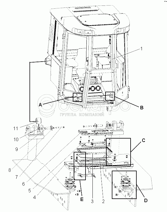 Каталог запасных частей к технике: ЧТЗ Бульдозер Б11. Установка модуля рабочего места