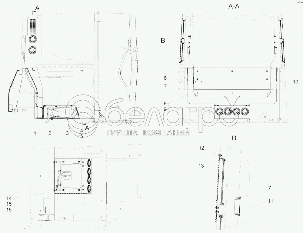 Каталог запасных частей к технике: ЧТЗ Бульдозер Б11. Установка отопителя Зенит 8000 и воздуховодов