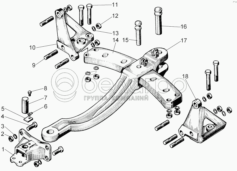 Каталог запасных частей к технике: ЧТЗ Бульдозер Б11. Установка прицепного устройства маятникового типа