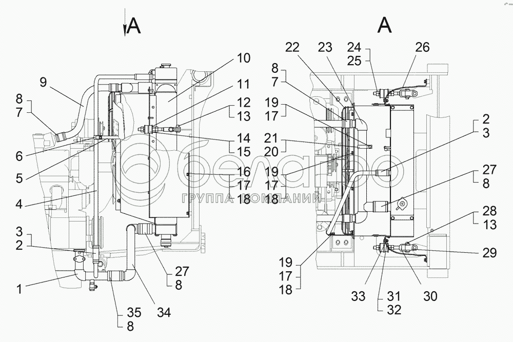 Каталог запасных частей к технике: ЧТЗ Бульдозер Б11. Установка радиаторов