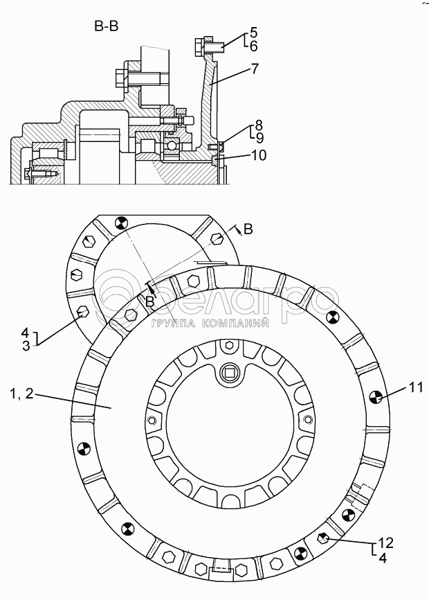 Каталог запасных частей к технике: ЧТЗ Бульдозер Б12. Установка бортовых редукторов