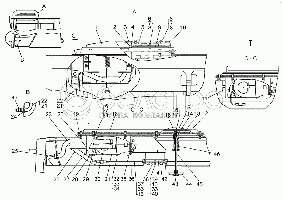 Каталог запасных частей к технике: ЧТЗ Бульдозер Б12. Установка отопителя-вентилятора