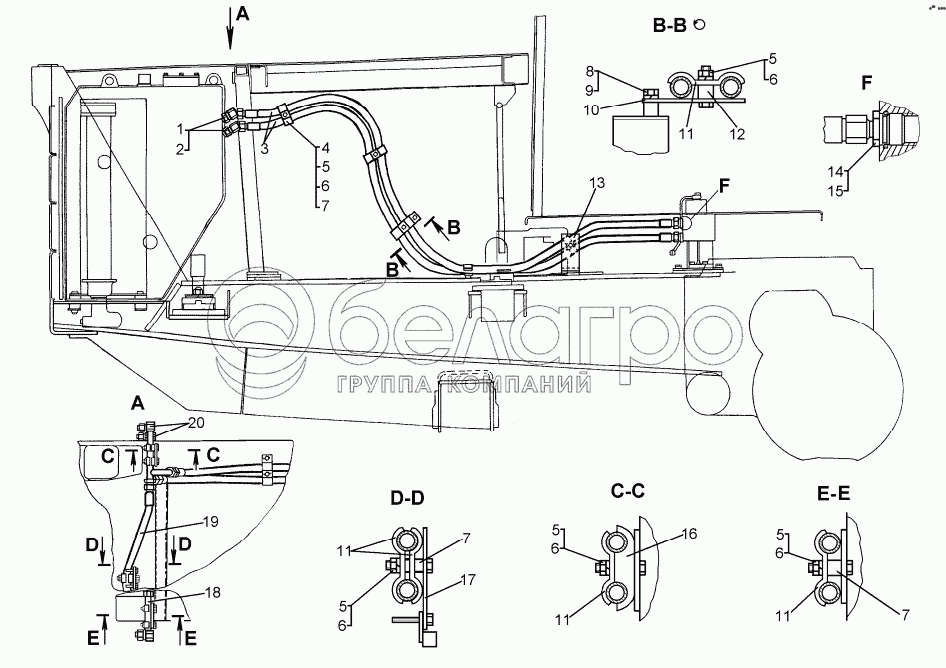 Каталог запасных частей к технике: ЧТЗ Бульдозер Б12. Установка передних трубопроводов